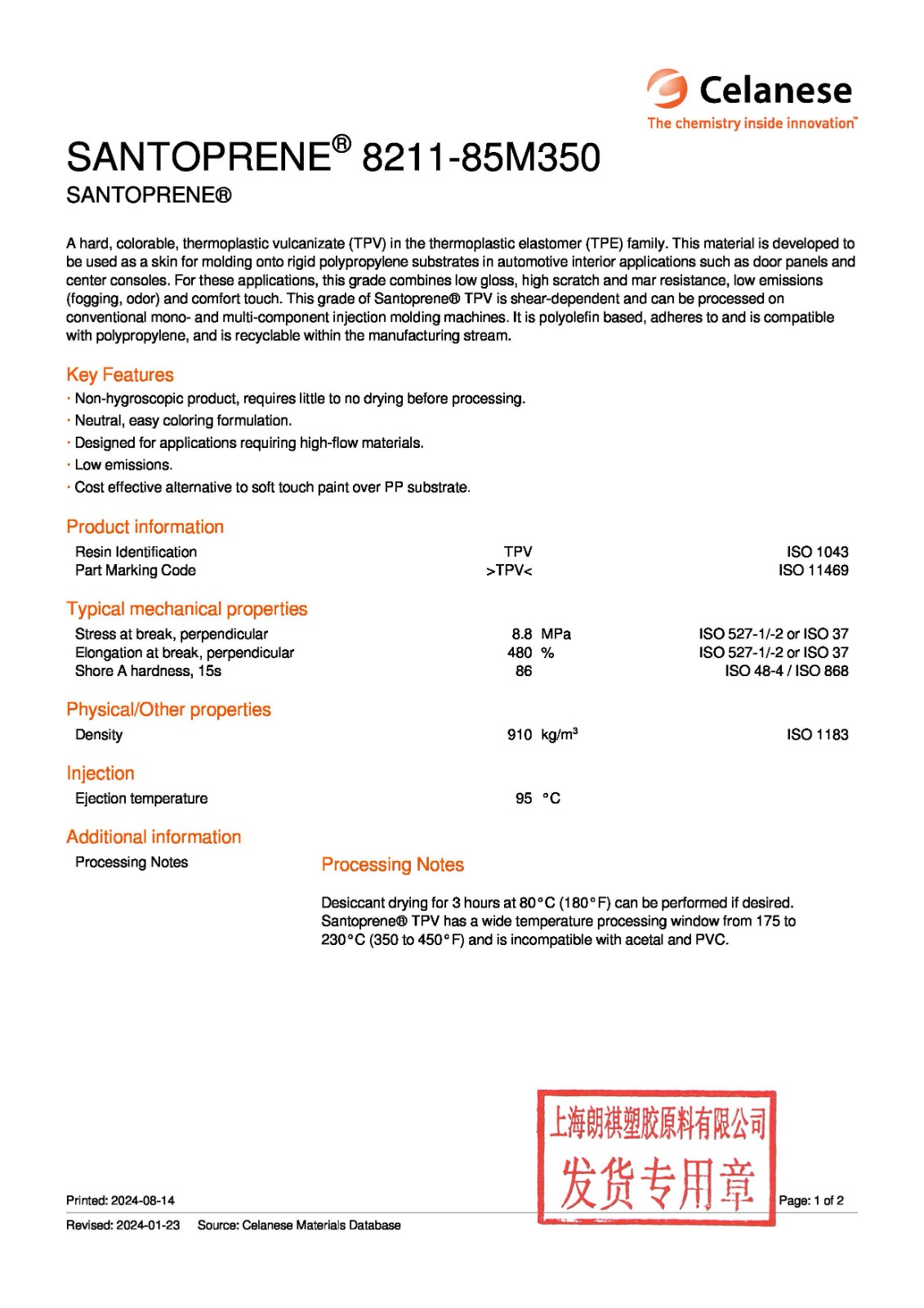 如需塞拉尼斯(Celanese)原廠物性表及相關(guān)文件,請(qǐng)聯(lián)系我司工作人員,謝謝!