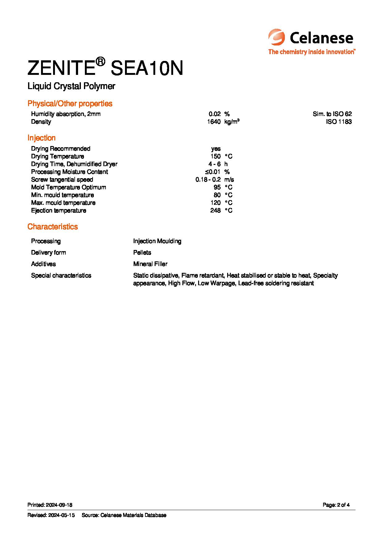 ZENITE SEA 10 N is a 30% mineral filled grade. It offers excellent antistatic property, surface appearance, low warpage, and excellent dimensional stability. Application for this grade is compact camera module, and other thin, small electronic parts.