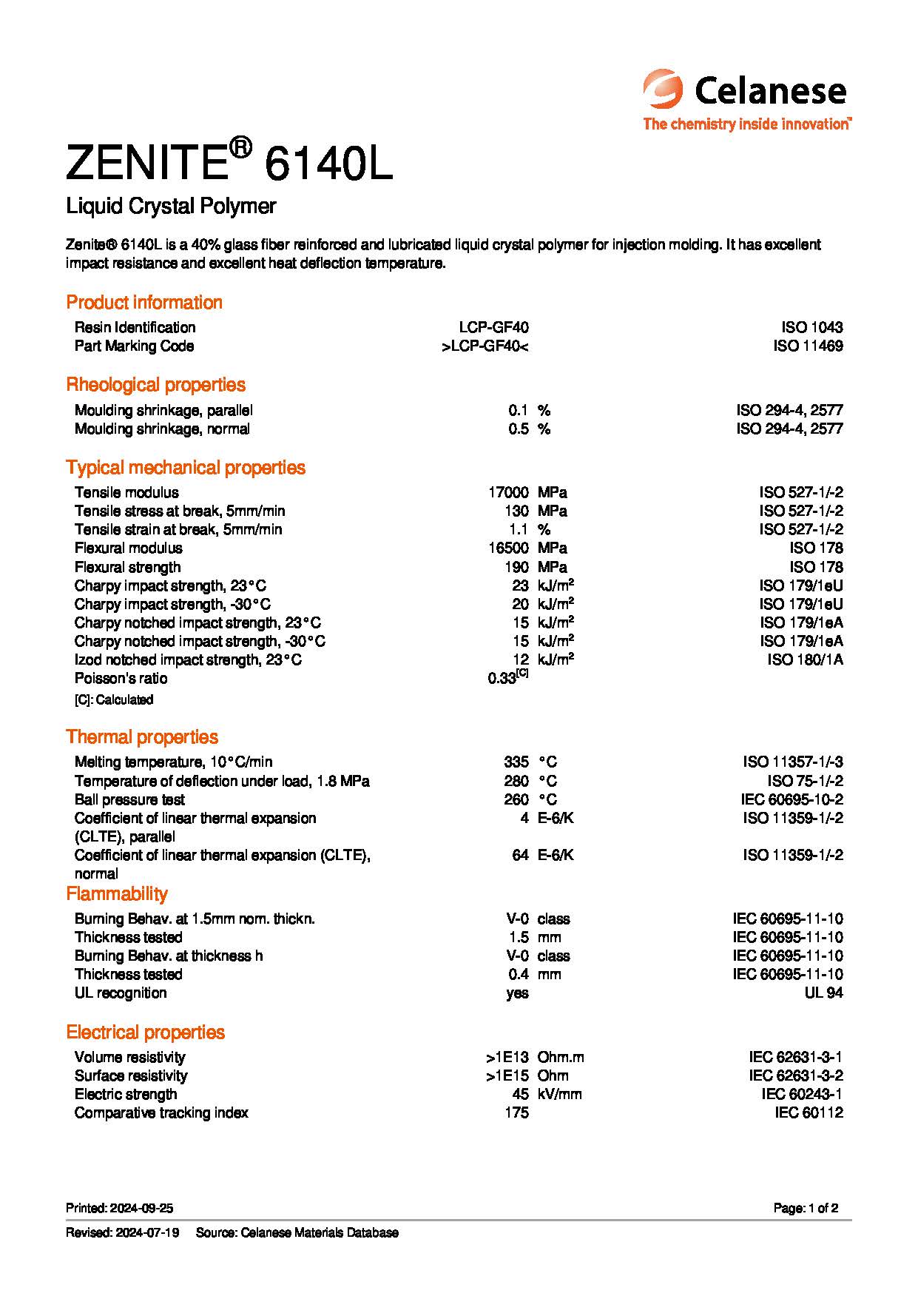 Product Features: Flame Retardant,Heat Stabilized,High Flow,Injection Molding,Lead Free Soldering, 40% glass reinforced, lubricated